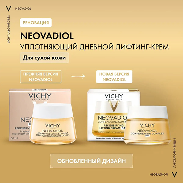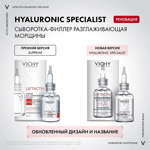 Продукты Vichy Liftactiv Supreme и Neovadiol выпускают в новой упаковке. Поменяли и названия: Supreme стал Hyaluronic Specialist H.A., 3 продукта из коллекции Neovadiol – Neovadiol Magistral.