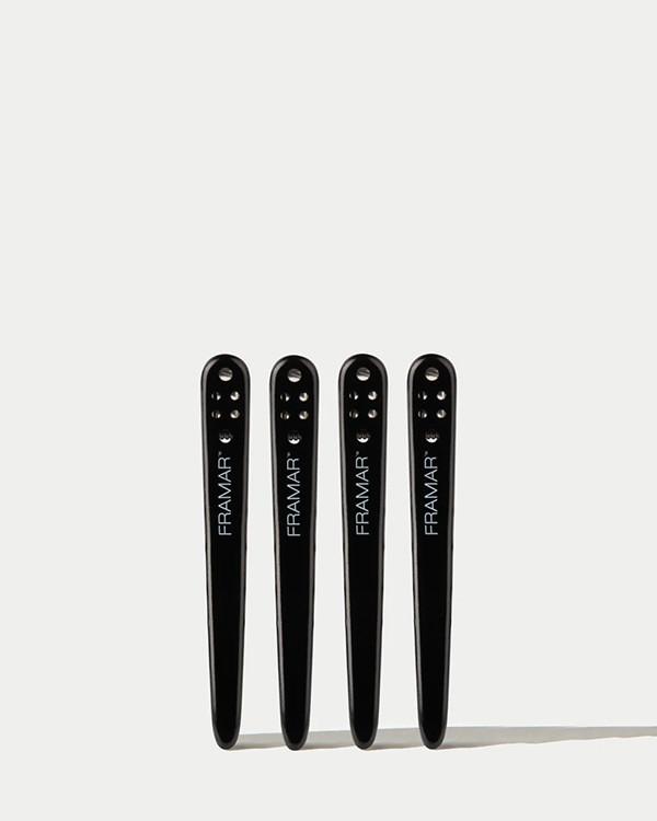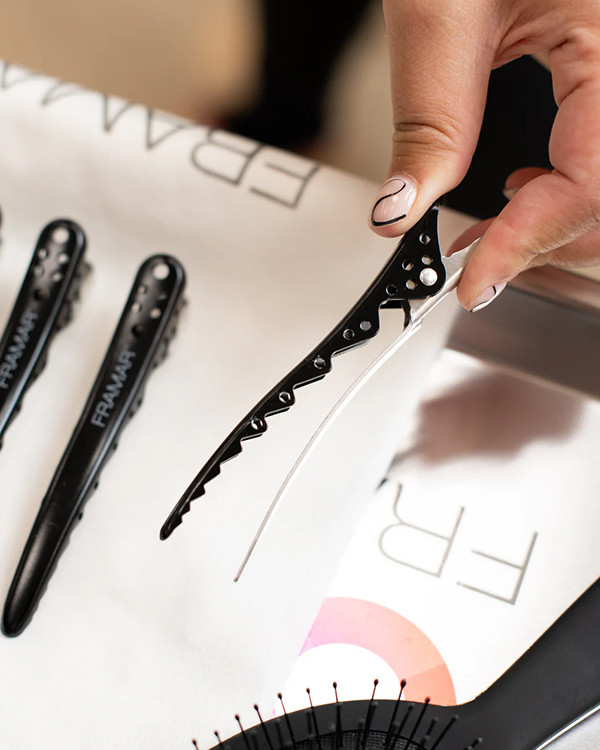 Гладкое покрытие и отсутствие статики делают зажимы Big Bite Сlips идеальным инструментом для стилиста. Большие зубцы перераспределяют давление зажима, а зазубренный край обеспечивает надежную фиксацию прядей. Внутри зажима антикоррозийная металлическая пружина с высокой эластичностью. Сделаны из твердого металла, который не гнется и не скручивается. Металлические зажимы в черном цвете. Работают со всеми типами волос.