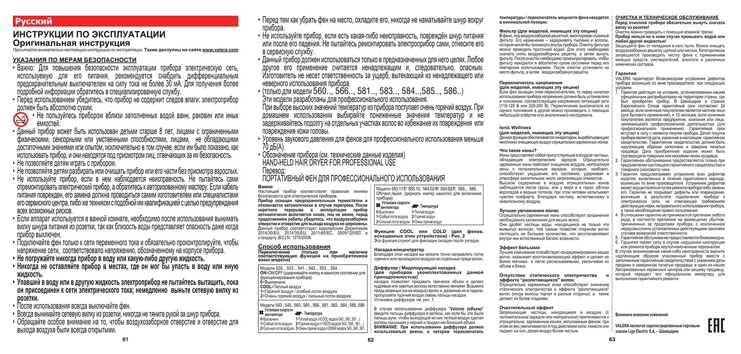 Легендарные инструменты Valera изготавливают в швейцарском городе Лигорнетто с 1955 года. Бренд сотрудничает с трихологами из Университетской клиники Цюриха и Университета Лугано, парикмахерами и даже специалистами авиационной отрасли. Производительность и безопасность подтверждают сертификаты ассоциаций VDE, Electrosuisse и NEMKO.