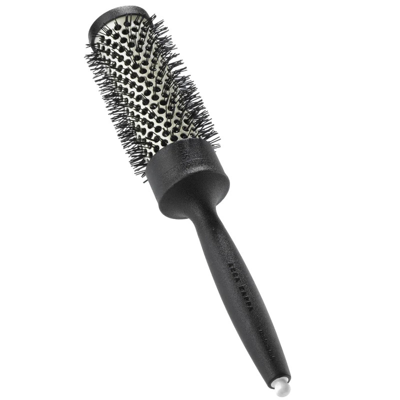 Эргономичная ручка изготовлена из специального материала на основе «углеродного волокна». Алюминиевый корпус покрыт керамикой и турмалином. Нейлоновая щетина с закругленными кончиками устойчива к воздействию фена.