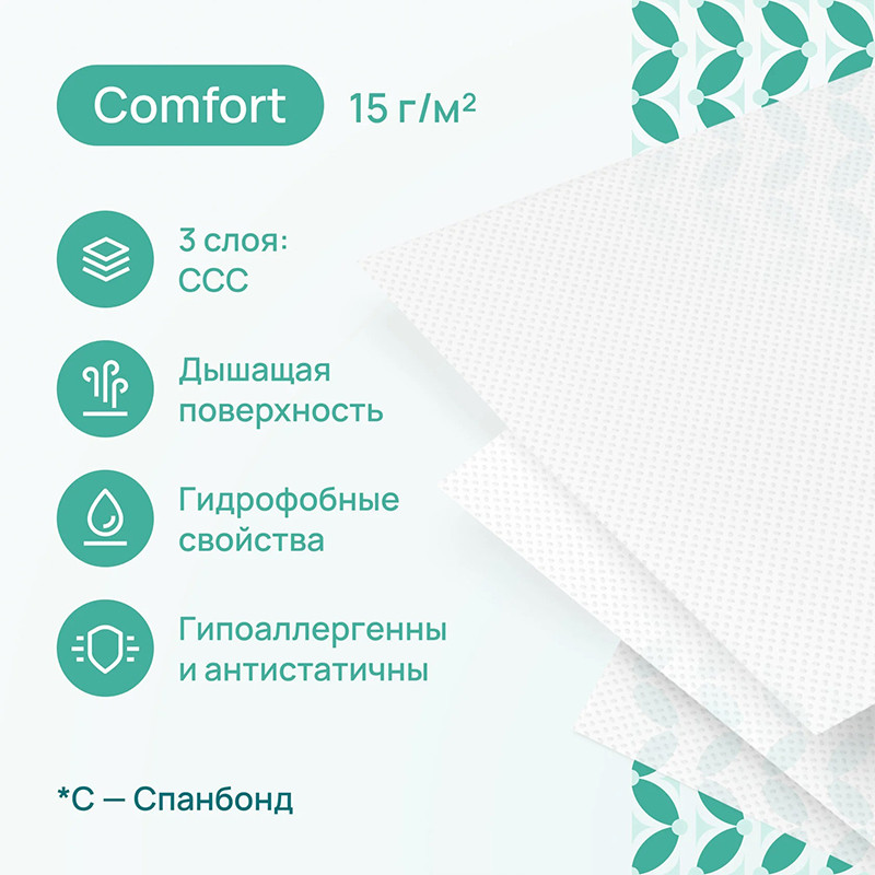 Изготовленные из спанбонда или спанбонда и мельтблауна изделия не рвутся, не растягиваются и не прилипают к телу. Благодаря высоким барьерным свойствам надежно защищают от передачи бактерий и вирусов.