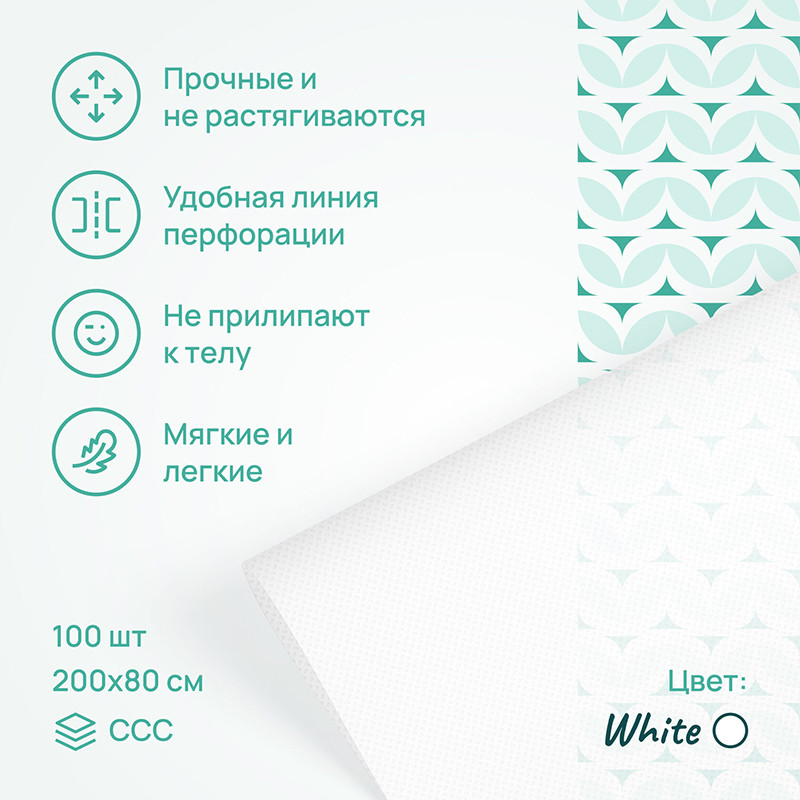 Используемый материал приятен к телу, гипоаллергенен и антистатичен, при этом простыни не пропускают косметологические и медицинские средства и защищают кушетки, столы и кресла. Используются в салонах красоты, массажных кабинетах, у косметологов, в медицинских центрах для проведения различных процедур.
