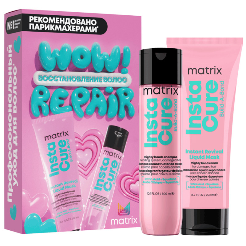 Подарочный набор Matrix Instacure Build-A-Bond для восстановления очень поврежденных волос.