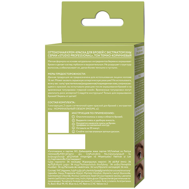 Оттеночная крем-краска Studio Professional для бровей с экстрактом хны.